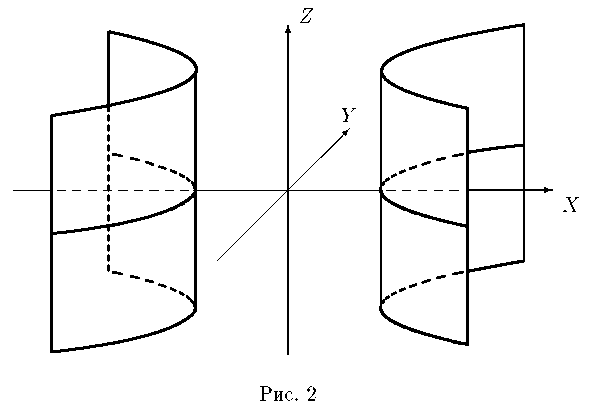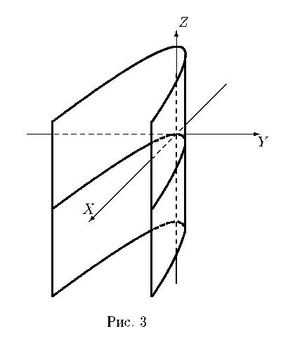 в трехмерном пространстве определяет цилиндрическую поверхность с образующими, параллельными оси OZ , направляющей является парабола (рис. 3).